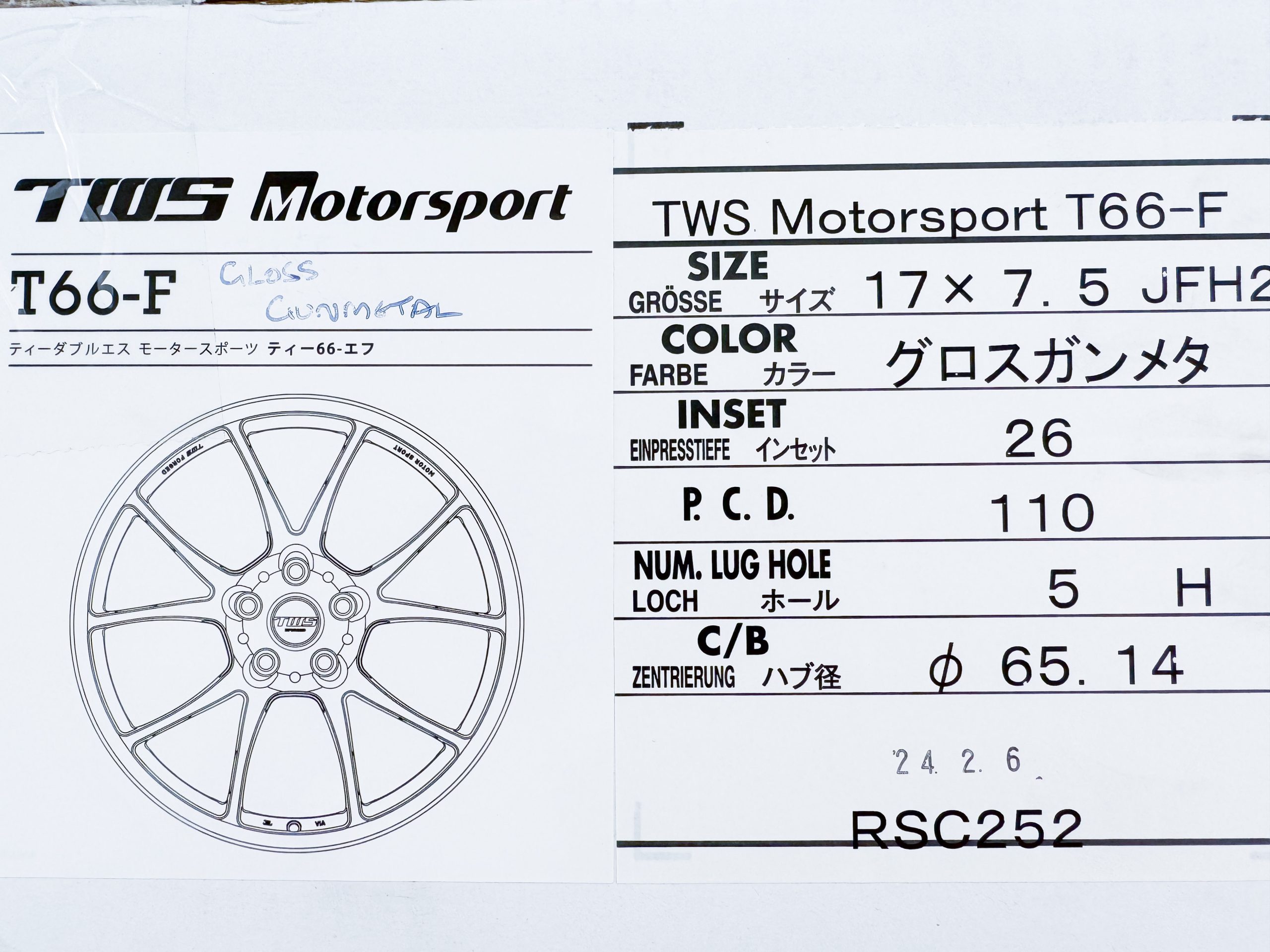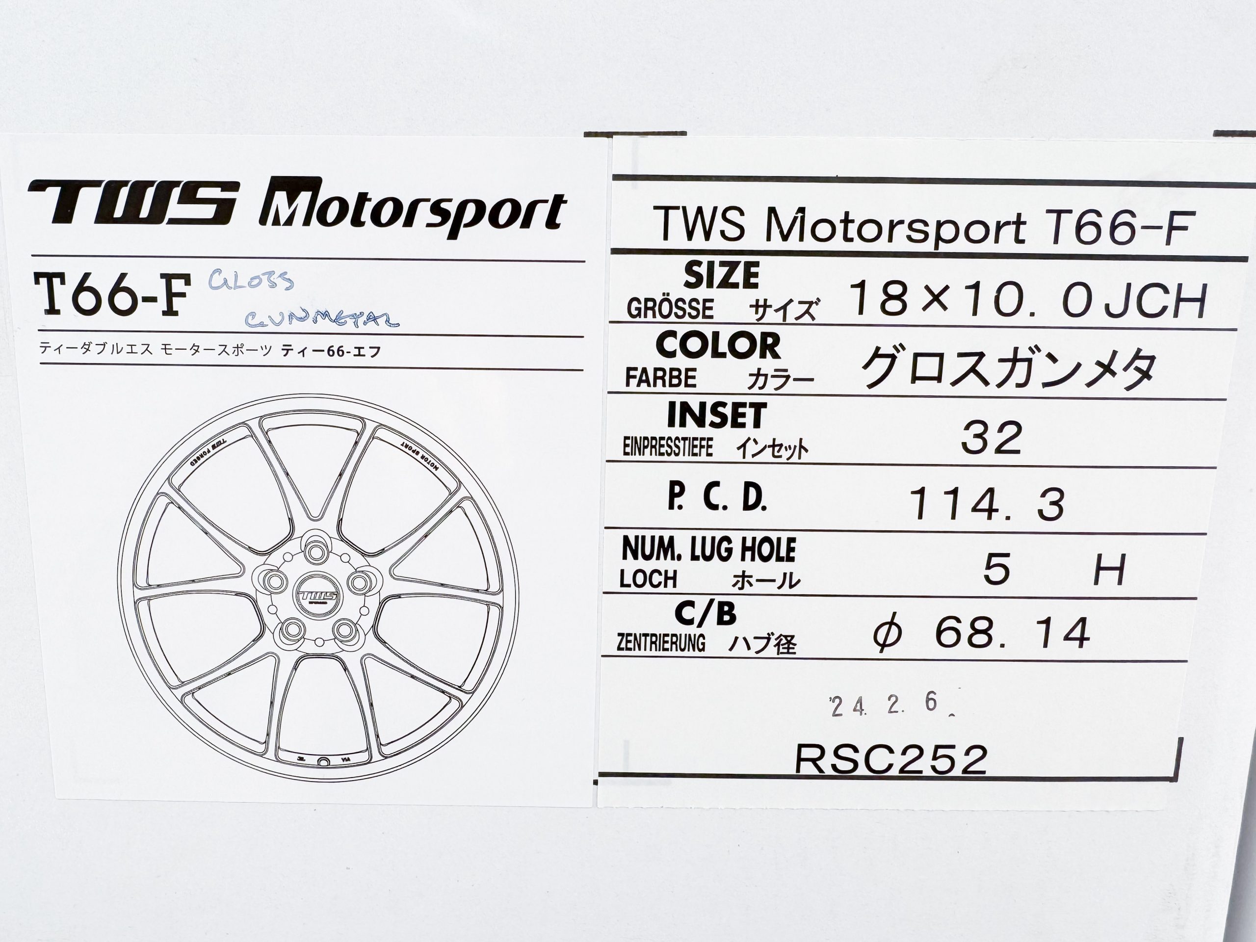 The TWS T66-F was developed to be the ultimate competition wheel. Leveraging TWS superior technology, plus knowledge gained through involvement in top level motorsports such as Formula One, Le Mans 24H and the Japanese Supergt championship, TWS have developed a road wheel of exceptional strength and lightness